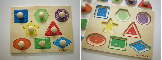 但是我有購買塑膠翻轉的幾何配對,好抓握,又可以拿在手上,就算孩子拿來丟我,也不像木頭那麼痛,一整個好心酸,但是撐過來了!